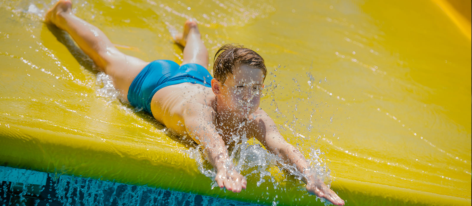 The three slides with different difficulty level provide varying challenges to the enterprising children. The small adventurers may cross without being wet on the suspension bridge between the islands above the pools, unless somebody hits them with the water cannons located on the islands. Bigger kids may also climb after several sliding rounds on the ropeway hanging into the pool with deeper water. Cannons, rope ladder, islands: it is a real pirate adventure full of treasures, isn’t it?